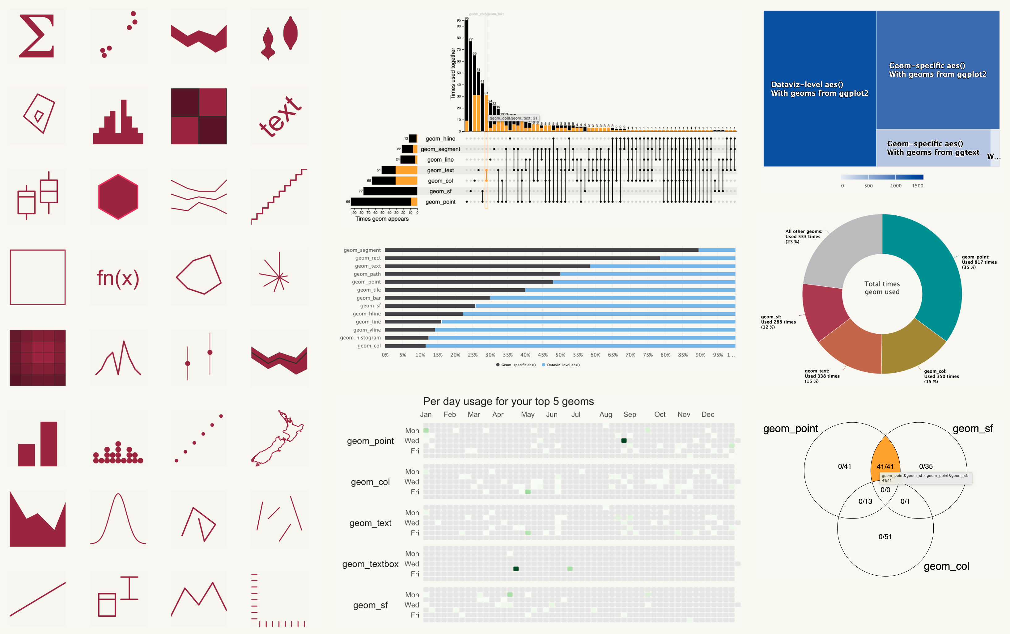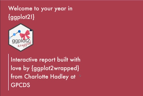geom_state_secret() <- function(){}We’re so excited to announce the launch of our new R package {ggplot2wrapped} which offers you a “Spotify Wrapped” like experience for your year in {ggplot2}! There’s a lot to say about the package but the easiest way to understand it is to checkout an example ggplot2wrapped report which is summarised in the GIF below.